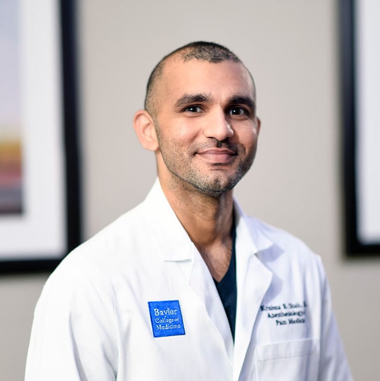Dr. Krishna Shah, M.D. completed his fellowship training in Interventional Pain at Harvard Medical School’s Brigham and Women’s Hospital. He completed his residency in anesthesiology at Baylor College of Medicine. He specializes in conservative treatment for low back and neck pain as well as cancer, joint, and nerve pain by utilizing minimally invasive techniques to treat pain for his patients. He has an active role in Baylor Medicine’s Spine Center where he works closely with neurosurgery, neurology, orthopedics, and physical rehab to provide a comprehensive and multidisciplinary approach to pain medicine.